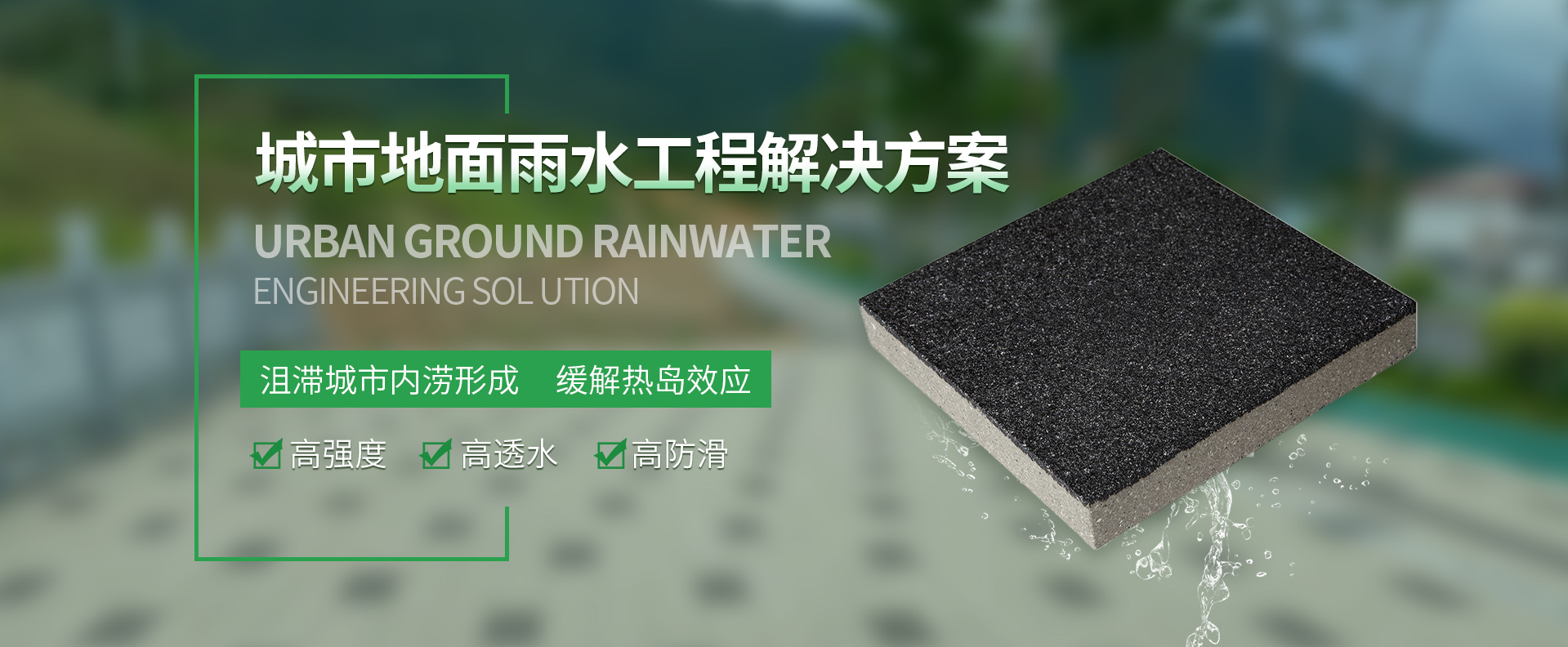 公司為響應國家建設海綿城市,解決現代化城市“防止內澇,地表硬化, 熱島效應”營造高質量的自然生活環境做出貢獻。 綠順透水磚采用陶瓷廢料為主原料,經過二次布料成型,高溫燒成,是具有保持地面透水性、保溫性、抗壓、吸音、降噪、防滑、耐風化、抗寒可重復使用等優點的綠色環保產品。